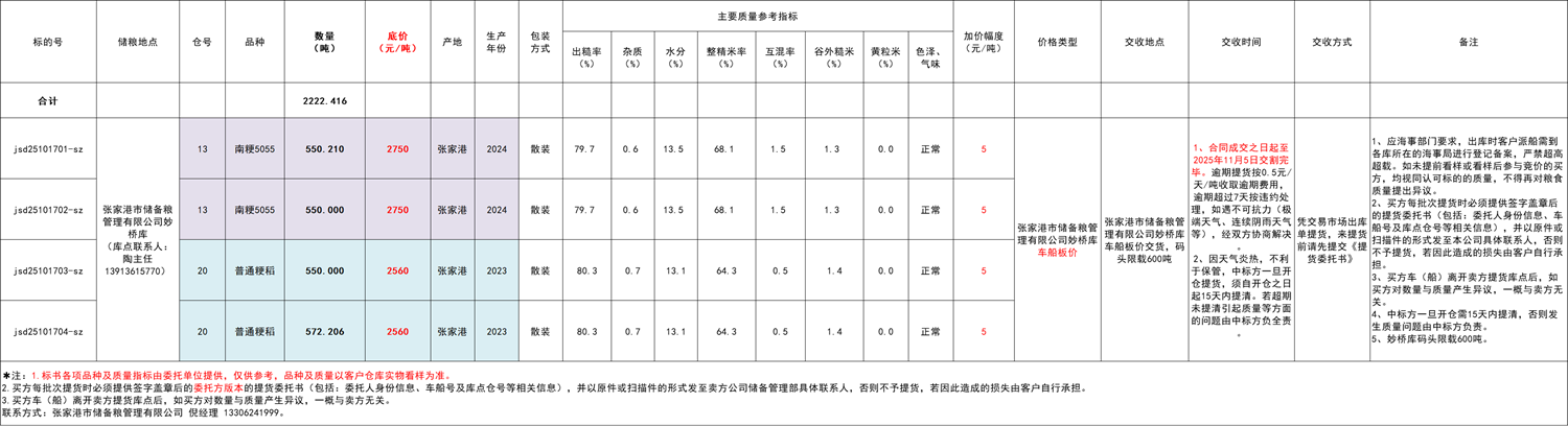 品种:2023年张家港产普通粳稻(1122.206吨)、2024年南粳5055(1100.21吨)