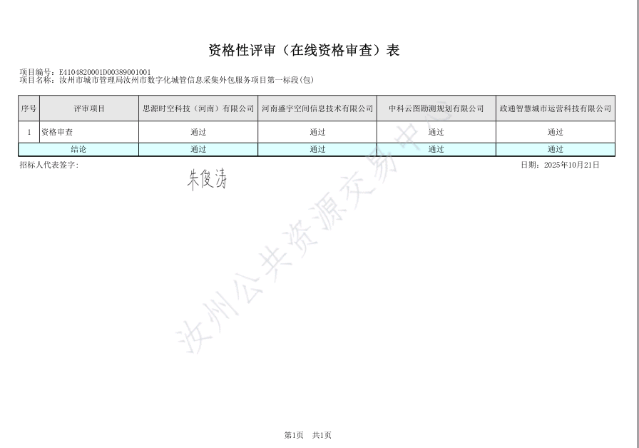 | 1.开******委员会对所有投标文件的总分排序 【详见附件4】 5.各评委对所有投标文件的分项评分明细【详见附件5】 6.投标文件被否决原因【详见附件6】 7.被推荐供应商名单及理由【详见附件7】 8.供应商所投************财政局 联系电话:0375-****** 邮箱地址:****** 联系地址:汝州市望嵩中路 116 号 11.各供应商对中标结果如有异议的,请在中标结果公告期限结束后7个工作日内,按照《政府采购质疑和投诉办法》相关规定,以书面形式由法定代表人或其授权代表人携带本人身份证件(原件和加盖公章的复印件)、质疑函原件(加盖公章及法定代表人或其授权代表签字)及相关证明材料向采购人和采购代理机构提出质疑,逾期将不再受理。 | |||||||||||||||||||||||||||||||