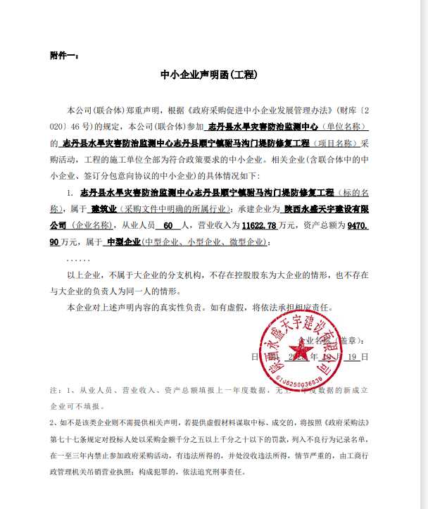 ******监测中心志丹县顺宁镇驸马沟门堤防修复工程中标(成交)明细.pdf 中小企业声明函.png 磋商文件.rar